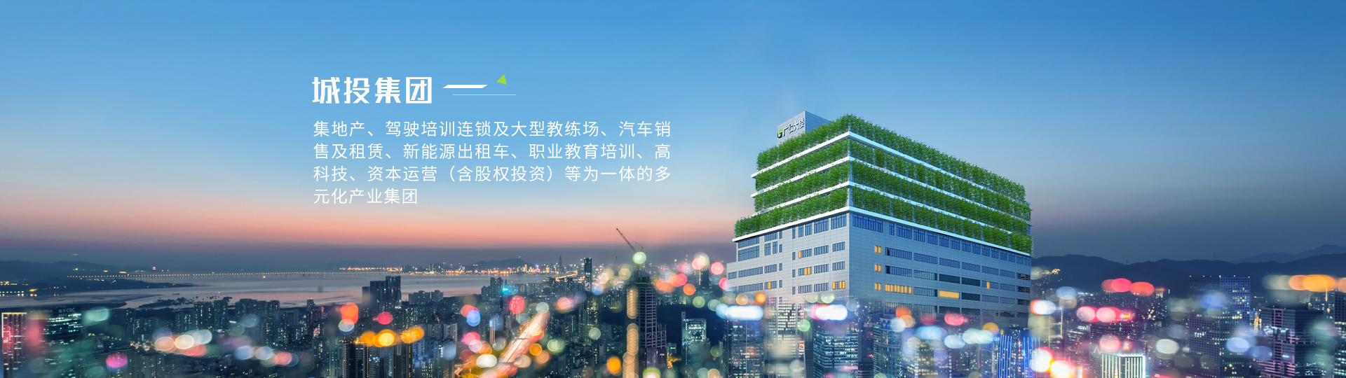 城投集團(tuán)堅持“愛黨愛國、孝敬父母”的核心企業(yè)文化,主要業(yè)務(wù)為高科技、互聯(lián)網(wǎng)、基金投資、地產(chǎn)開發(fā)、職業(yè)教育培訓(xùn)、駕駛培訓(xùn)、汽車銷售及租賃、出租車運營等。